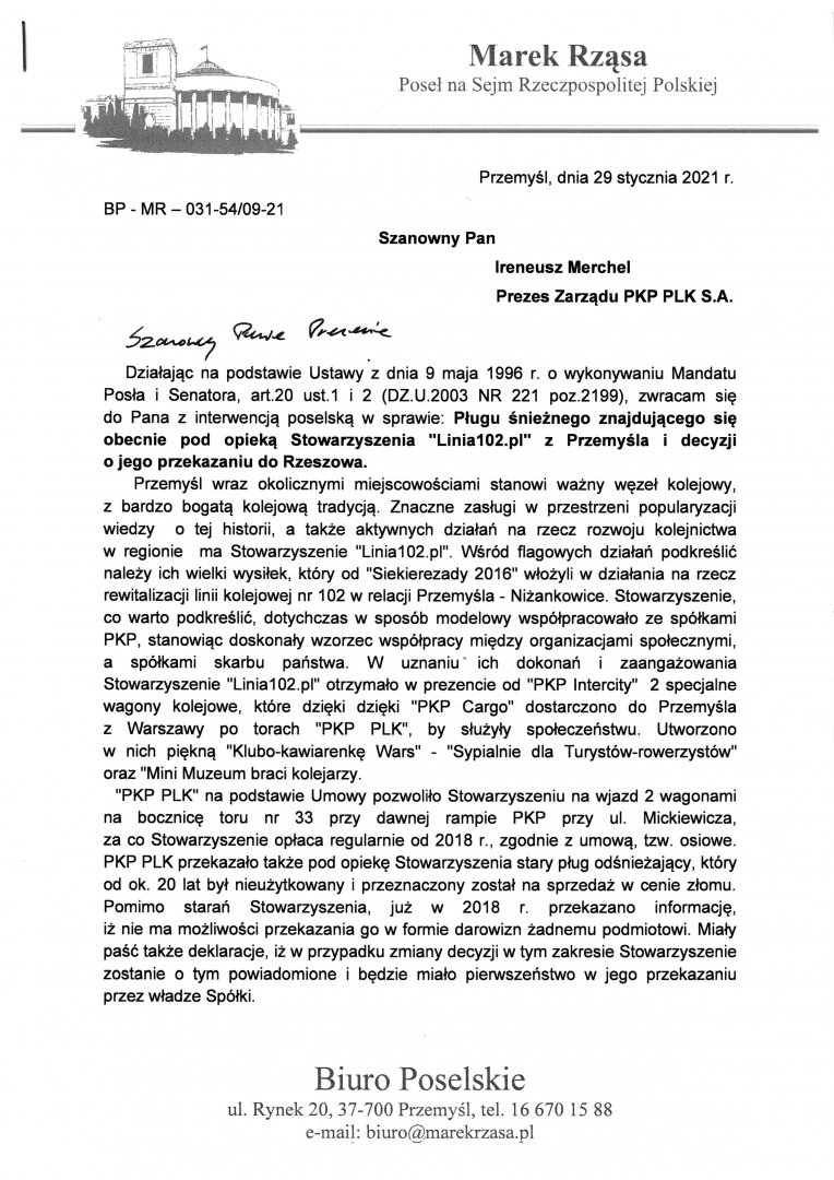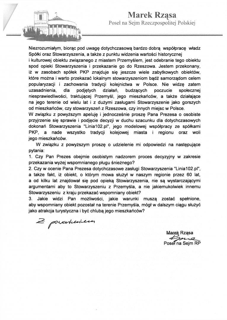 interwencja poselska w sprawie: Pługu śnieżnego znajdującego się obecnie pod opieką Stowarzyszenia