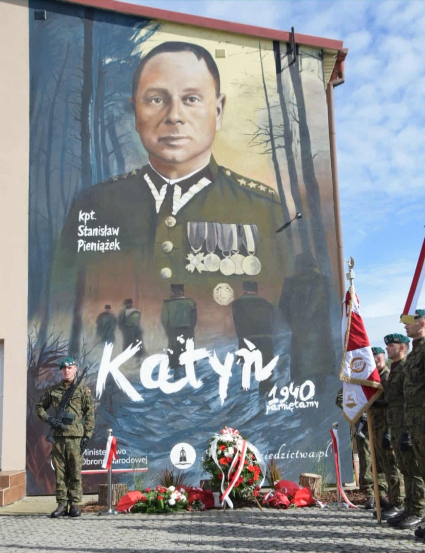 zamordowanego przez sowietów w Katyniu, upamiętniła postać swojego bohatera w ten niezwykły sposób. Mural na ścianie miejscowej szkoły będzie stanowił inspirację i wzór do naśladowania do kolejnych pokoleń uczniów.