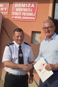 Są takie dni, takie momenty w historii, które stanowią zwieńczenie wspaniałego dzieła, pracy często wielu pokoleń, a zarazem otwarcie nowego, jeszcze ważniejszego, etapu w działalności danej jednostki. Nie ma większego święta, głębszego wyrazu uznania dla jednostki Ochotniczej Straży Pożarnej, jak włączenie jej do Krajowego Systemu Ratowniczo - Gaśniczego. Dlatego stając dziś przed Druhnami i Druhami jednostki OSP Hucisko Jawornickie złożyłem na ręce Druha Prezesa podziękowanie i wyrazy uznania za ich zaangażowanie, poświęcenie, profesjonalizm w niesieniu pomocy mieszkańcom Gminy. Podziękowania złożyłem również p. Stanisławowi Petyni, Wójtowi Gminy za stałe wspieraniem ochotników.